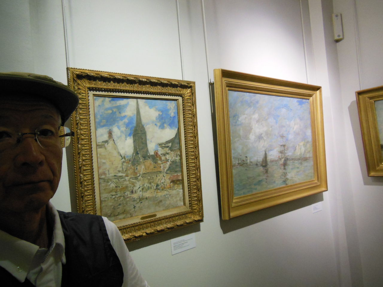 ウジェーヌ・ブーダンは1824年フランス ノルマンディー地方のオンフルールで、水夫(小さな船の船長?)の息子として生まれました。1835年に(11歳で)家族でセーヌ河河口対岸のルアーブルに転居しました。父親は文具商を始め、成功したようです。ウジェーヌ・ブーダンは転居直後から、画家の見習いを始めたようです。1844年に20歳で、文具・額縁・絵画の店を開店しました。1851年に(27歳で)ルアーブルの奨学金を貰い、3年間パリで絵を学んだようです。絵の買い付けなどで1857年にモネと、1859年にクールベと知己を得ました。薦められて、パリのサロンにデビューしました。1874年の第一回印象派展に出品しました。1881年のサロンで三等賞、1889年のサロンで金賞を受賞しました。1892年にレジオン・ドヌール勲章を受け、ナイトの称号も得たようです。遅咲きの画家と言えそうです。