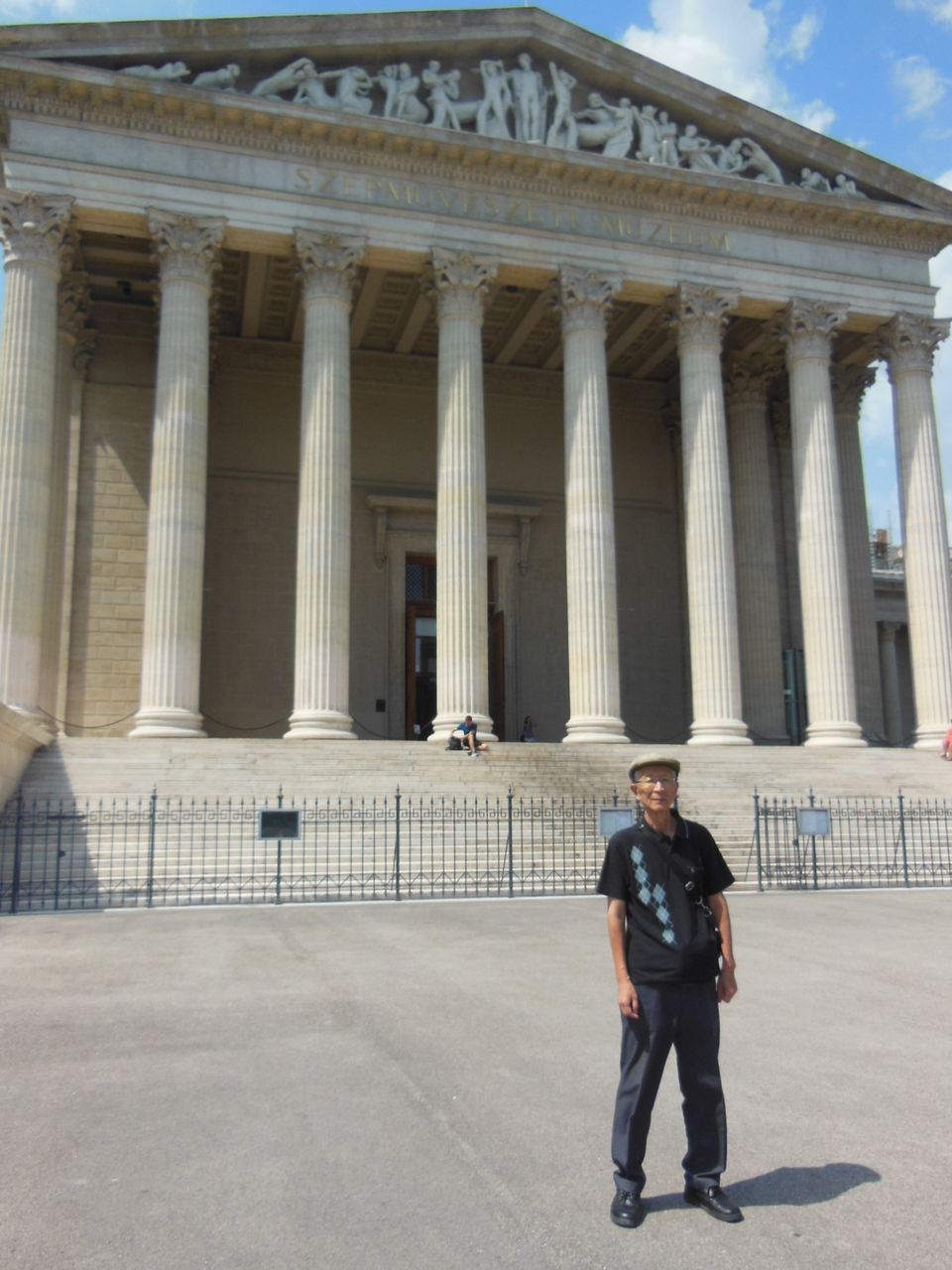 王城の向こうに見えるのがドナウ川で、左上のセーチェ―二鎖橋を渡りました。ケーブルカーで王丘に上りました。王城中央の丸井ドームの辺りがハンガリー国立美術館です。