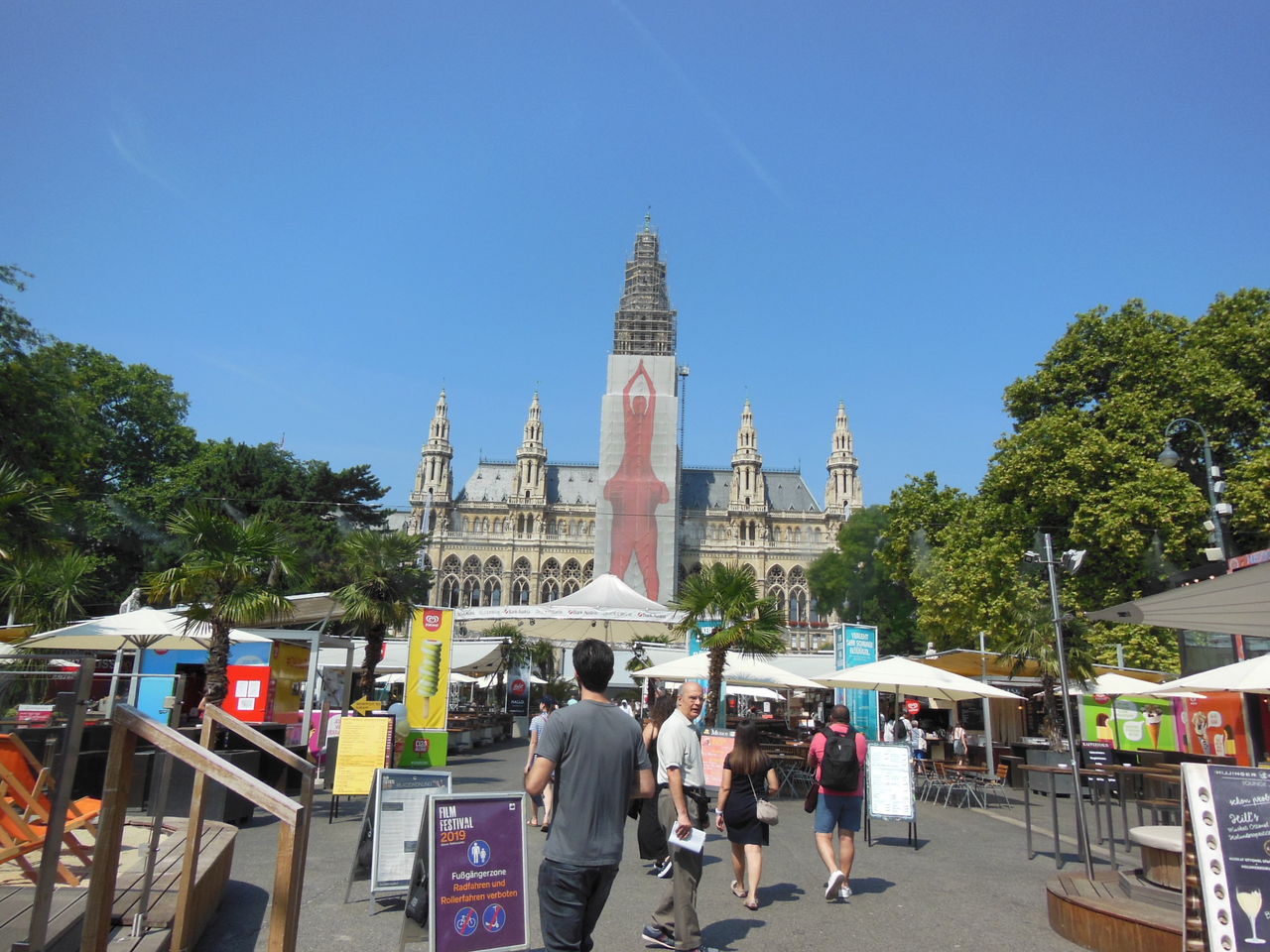 2019年7月ウィーン観光後、ブダペストへ列車で移動しました。リヒテンシュタインのガーデン・パレスとシティ・パレスを鑑賞した翌朝(土曜日)に朝食を大急ぎで食べて、ホテルをチェックアウトしました。バスと地下鉄でウィーン中央駅に行き、ブダペスト東駅行きの列車に乗りました。インターネットでオーストリア鉄道の8:42発二等車(窓際の)座席指定チケットを購入しました。事前購入すると、正規料金の半額近くで購入できました。
