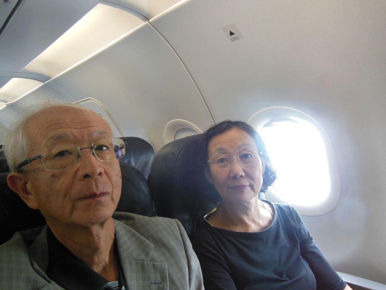 マカオ行き便機内で自撮り