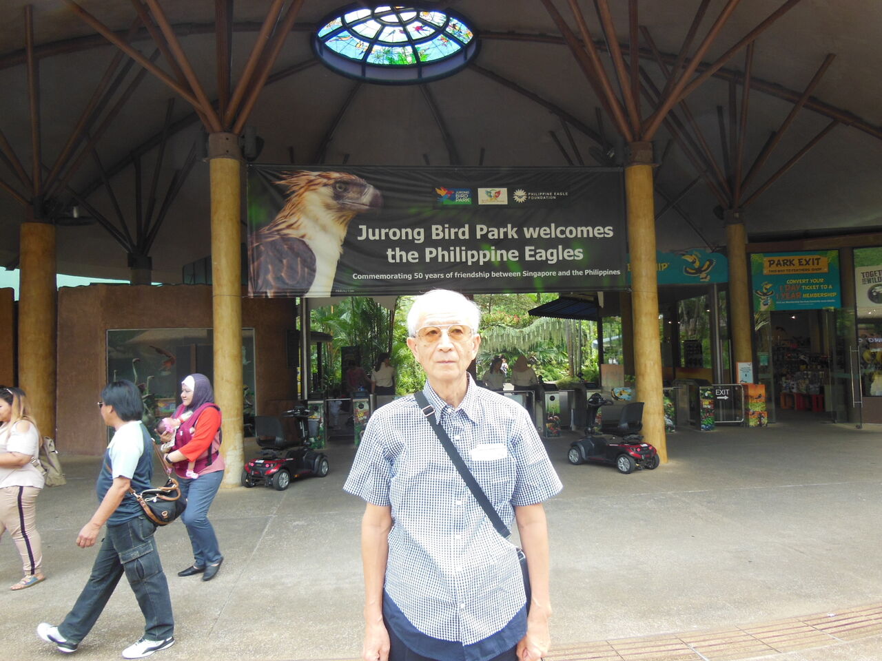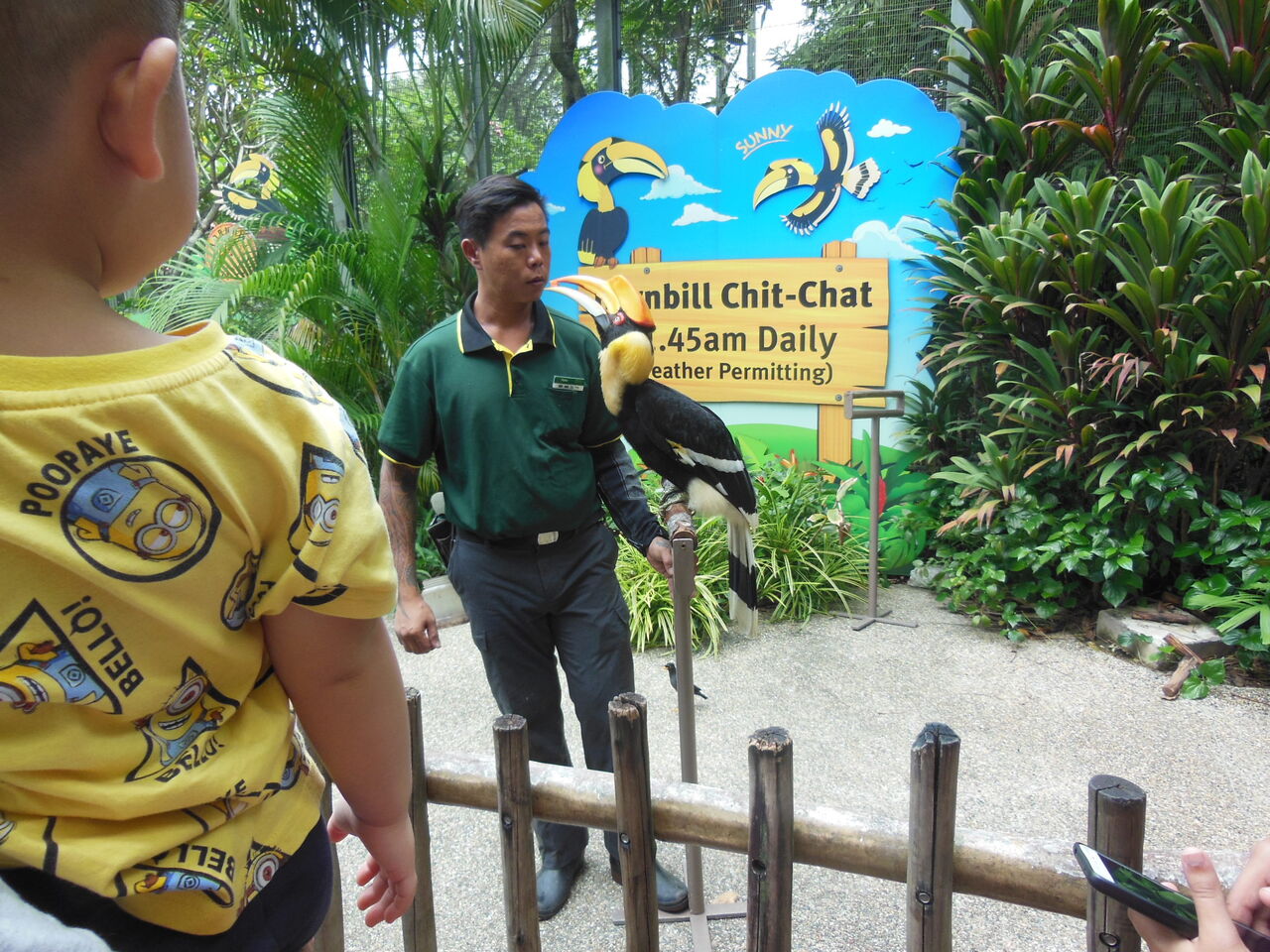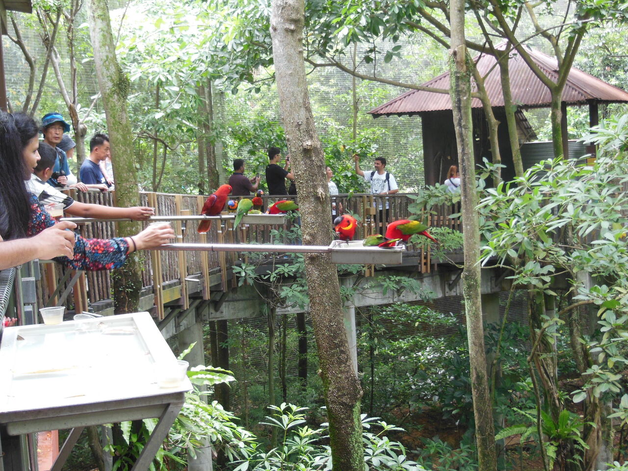 空港内「バタフライ・ガーデン」餌場の前で