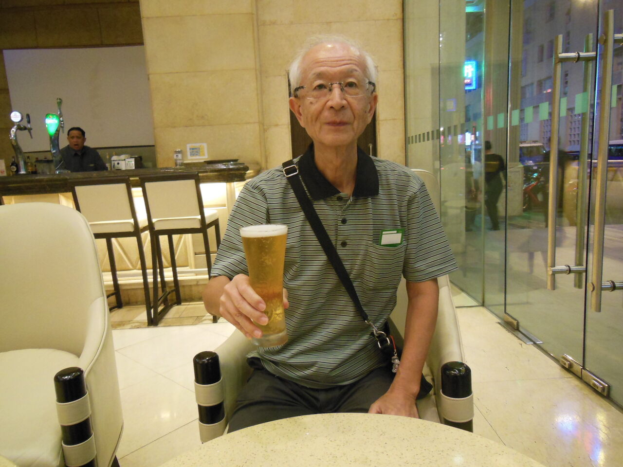 ホリデイイン・マカオにチェックインすると無料ウェルカムドリンクのサービスがあり、一杯やれました。ウエルカム・ドリンクのビールを前に